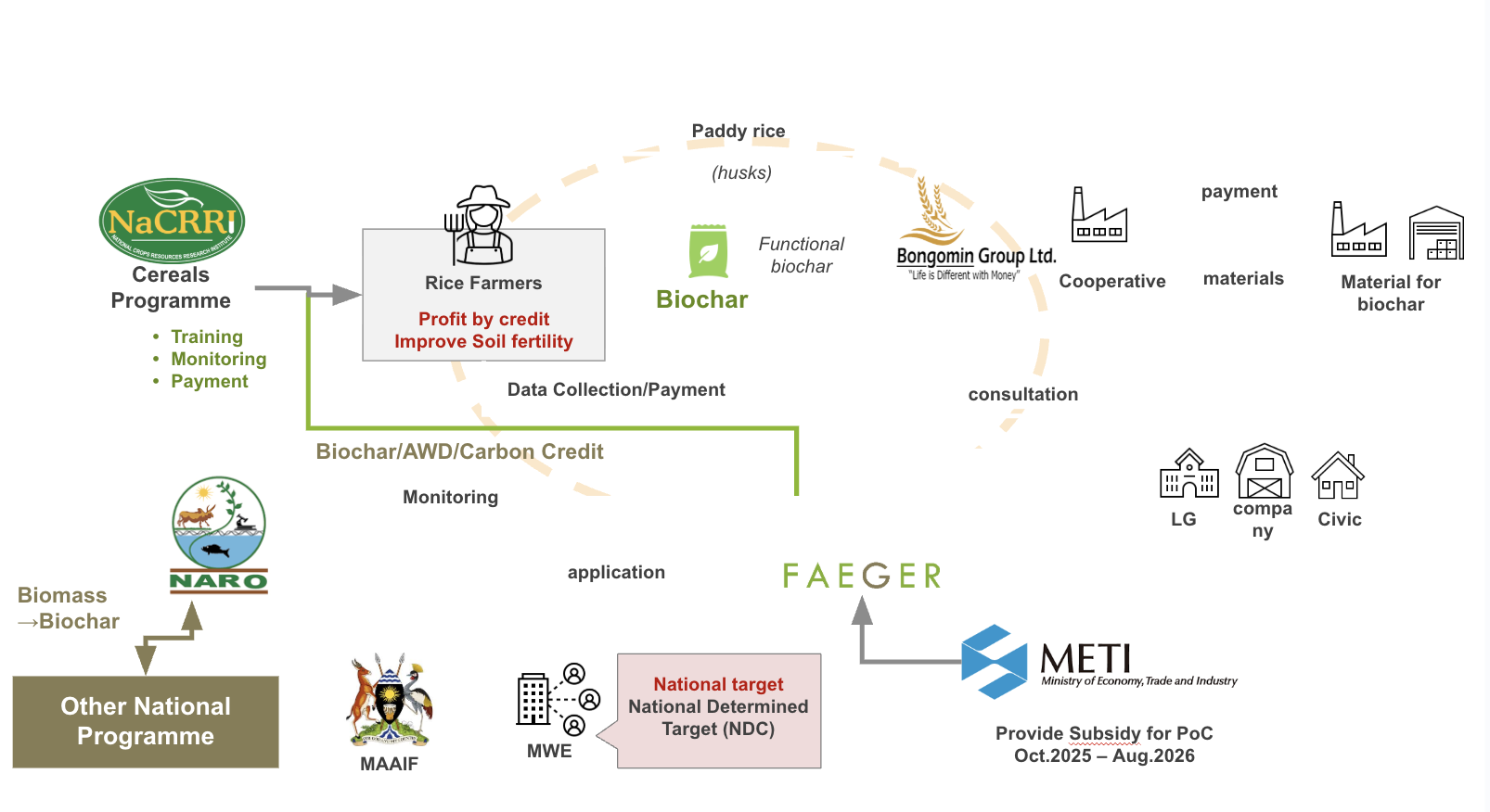 Faeger Co. Ltd. (Head Office: Chiyoda-ku, Tokyo; CEO: Takahiro Ishizaki) announces that its project named “The Republic of Uganda/ Pilot Project for the Promotion of Climate-Smart Rice Cultivation Using Carbon Credits,” has been adopted for the FY2024 Supplementary Budget Subsidy for Global South Future-Oriented Co-Creation Projects (Small-Scale Demonstrations/ Feasibility Study Projects) by the Ministry of Economy, Trade and Industry as of August 1, 2025.