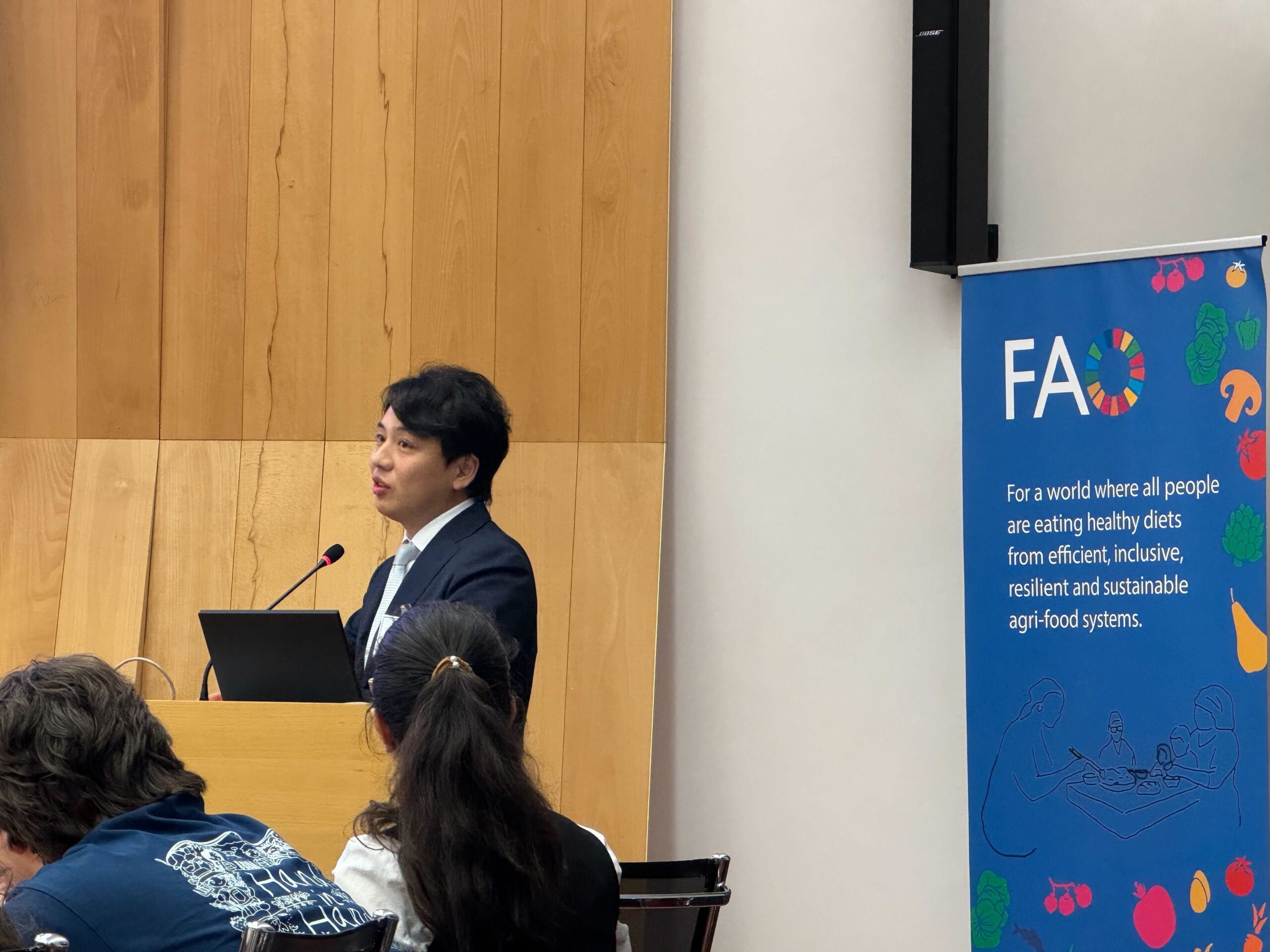 「FAOとの連携は各地域で進展していますが、今回は1年ぶりに本部でDDGのBeth氏をはじめ多くの皆様と、より包括的な協働の可能性を議論することができました。登壇したセッションでは、世界各国のスタートアップとも新たなつながりが生まれ、同じ志を持つ仲間たちとの共創の広がりを感じています。